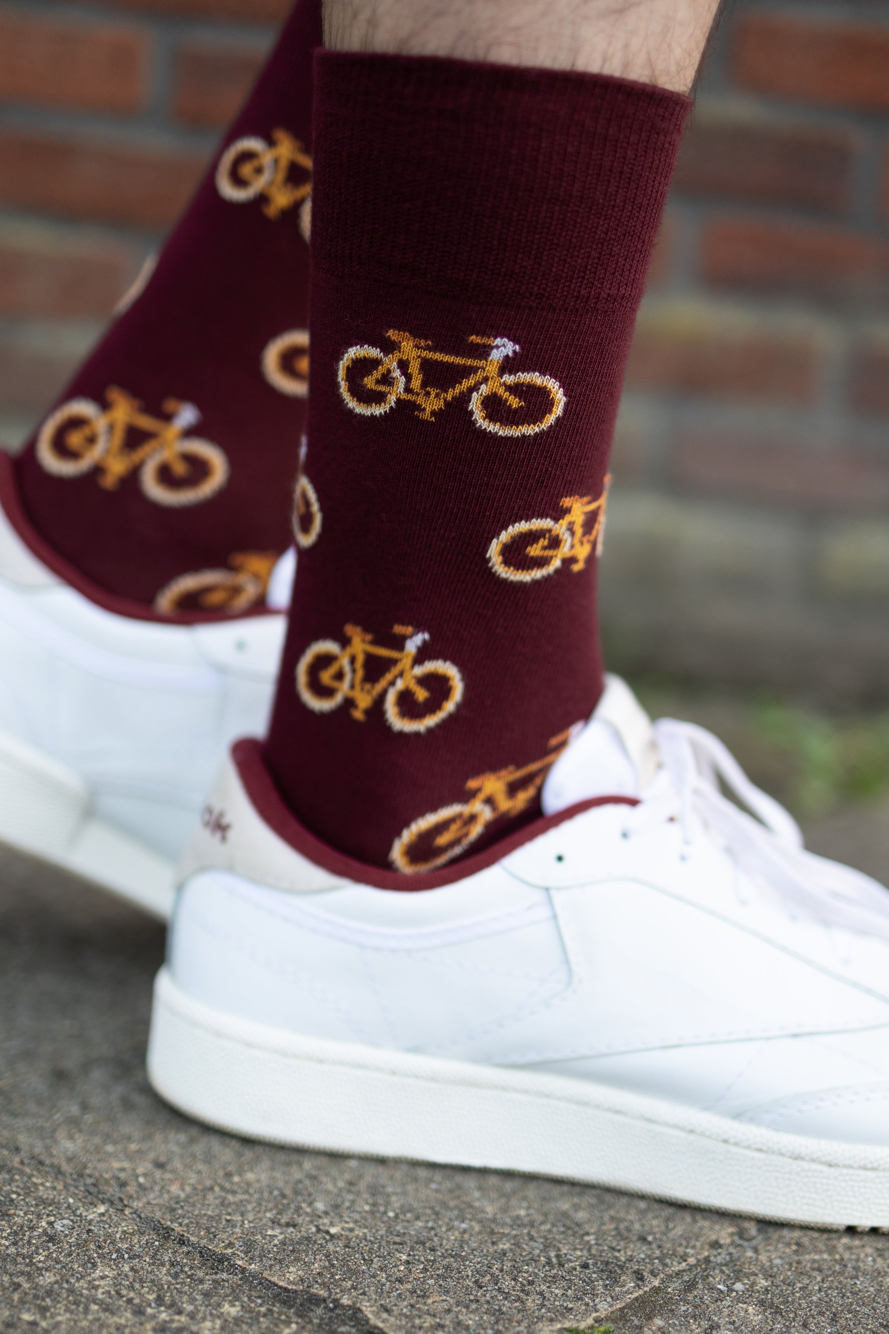 Burgundy and Mustard Bike Bamboo Socks