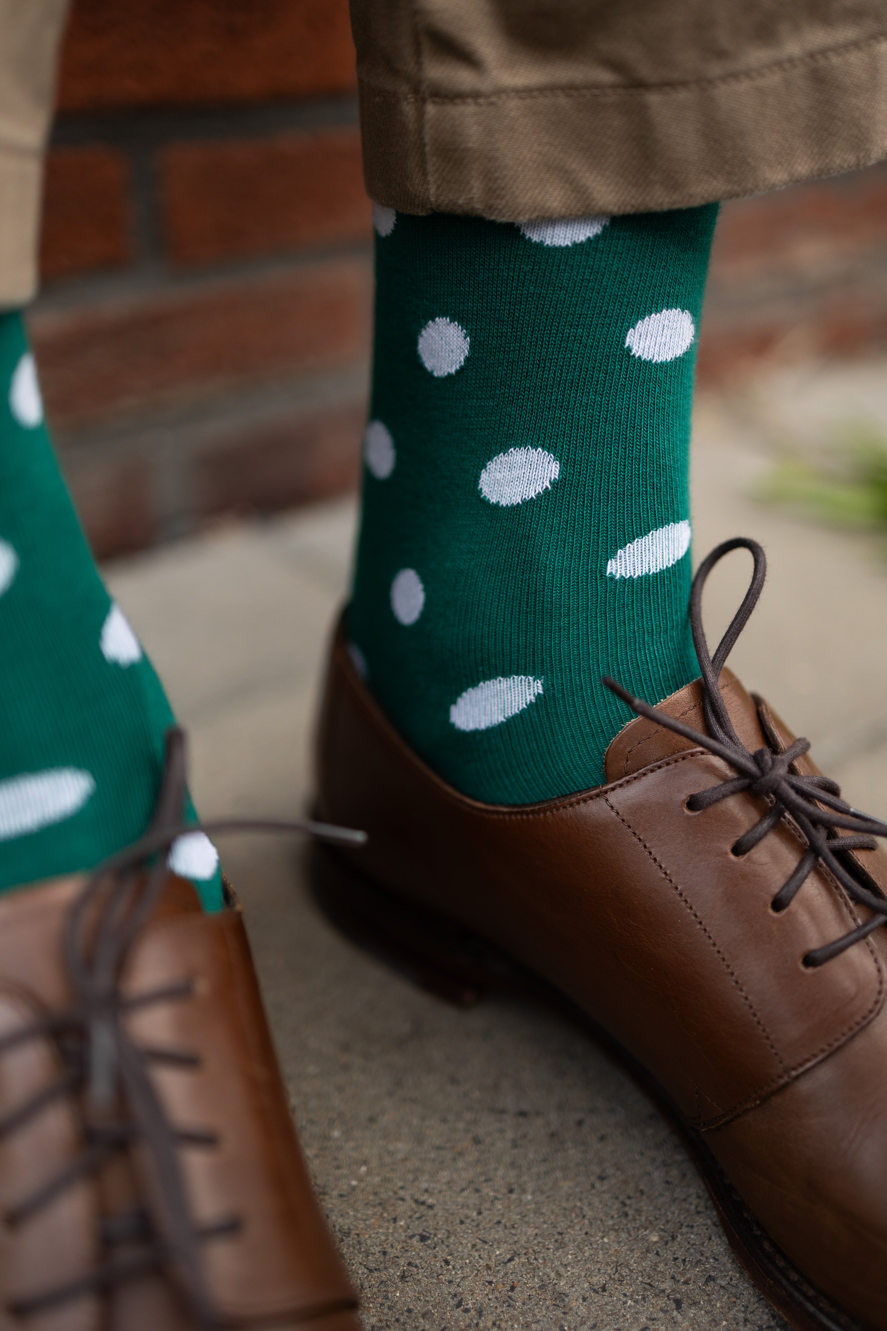 Experience the perfect blend of comfort and sustainability with Slopes&Town Green and White Dots bamboo socks.