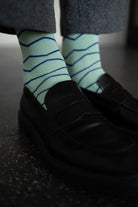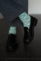Our Light Green and Blue Zigzag bamboo socks are exceptionally soft. Knitted using bamboo fibres and recycled polyester, providing durability and effectively regulating temperature and moisture. In warmer climates, they direct heat and moisture away from the skin, ensuring a cool and dry feel. On colder days, they keep your feet comfortably warm.