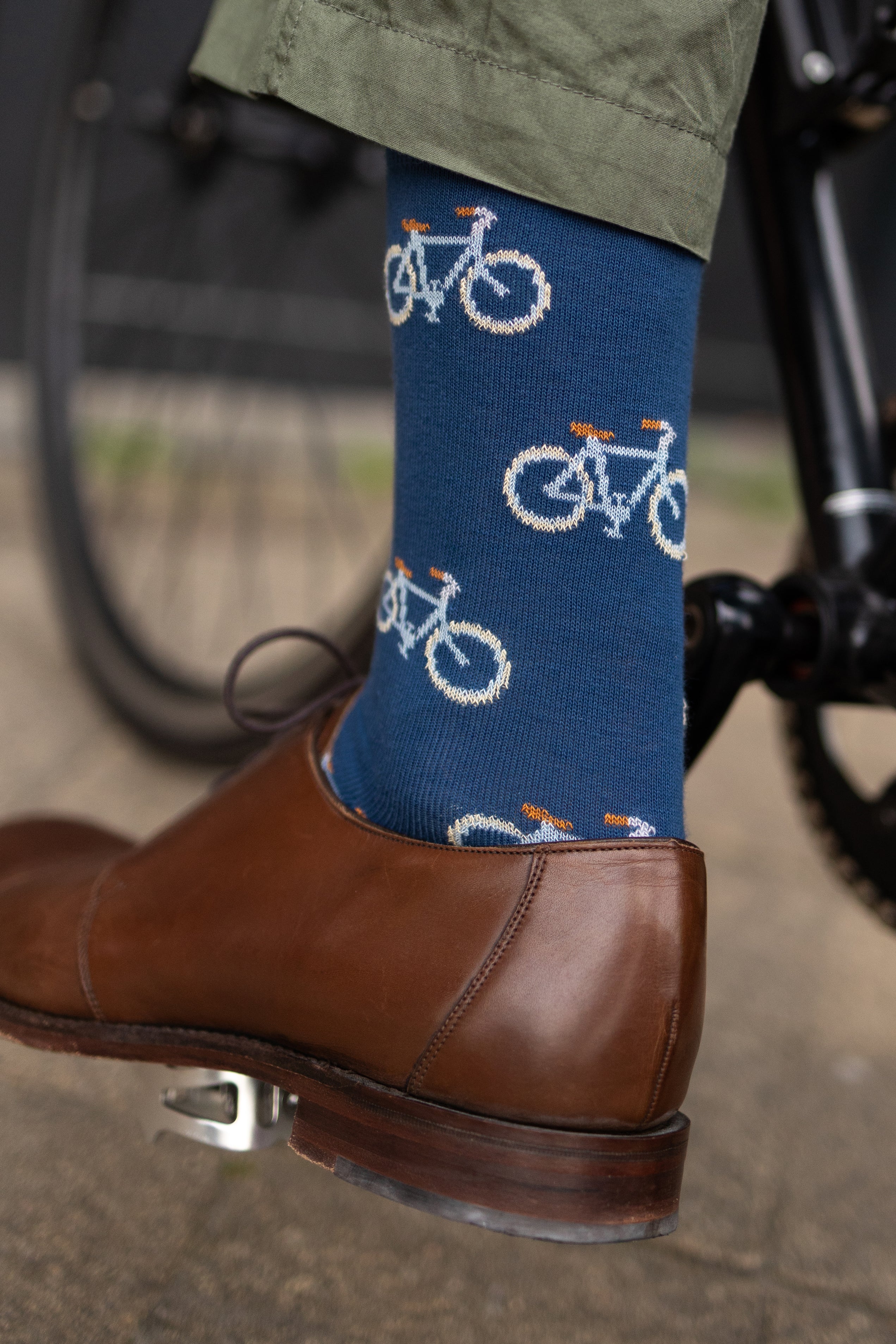 Give your feet the comfort they deserve with Slopes&Town True Navy and Light Blue Bike bamboo socks. These socks are crafted from a breathable bamboo blend and feature our bike motif, delivering an unbelievably smooth and cosy experience.